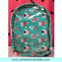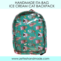 A handmade itabag backpack featuring a cute ice cream cat patterned design!